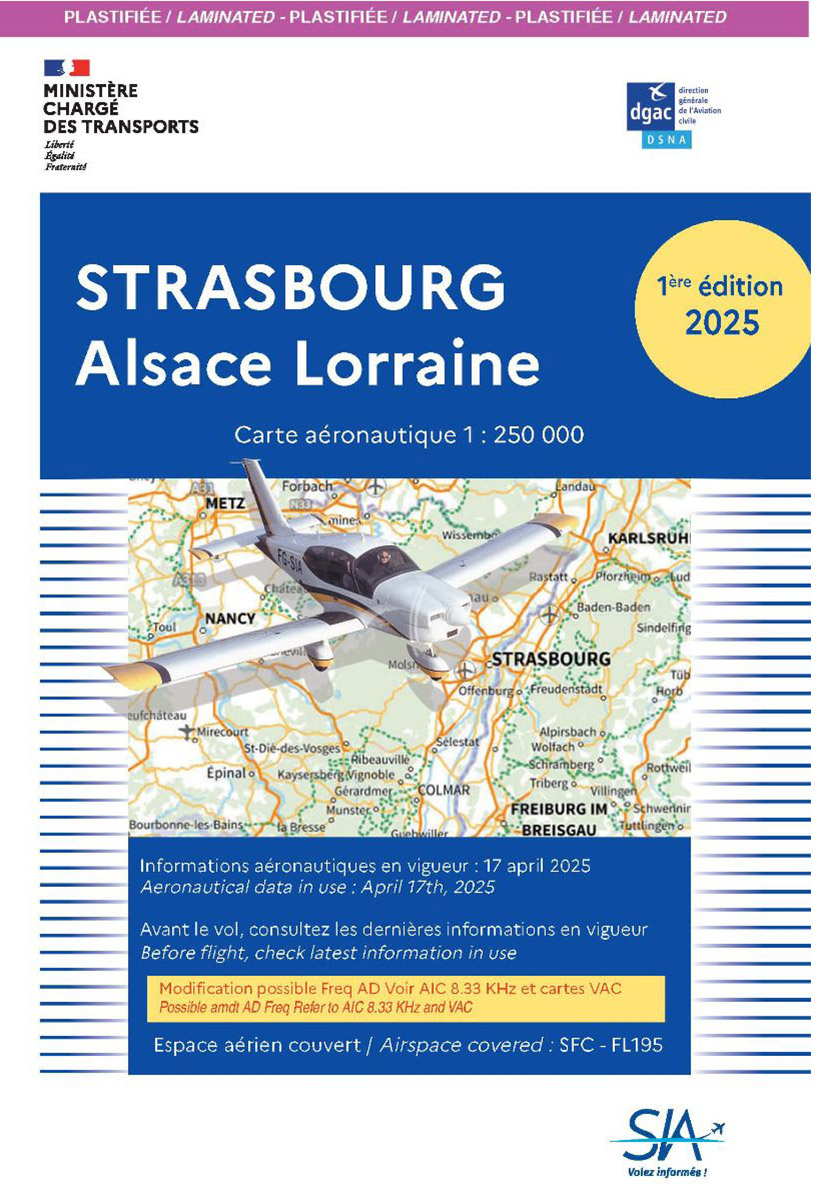 Carte aéronautique VFR de Strasbourg 2025 édition 1 version plastifiée