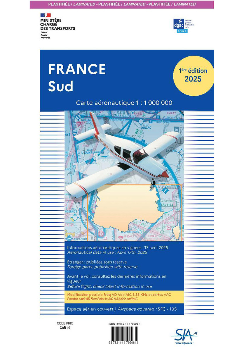 Carte aéronautique VFR Million du Sud de la France édition 1 version plastifiée 2025