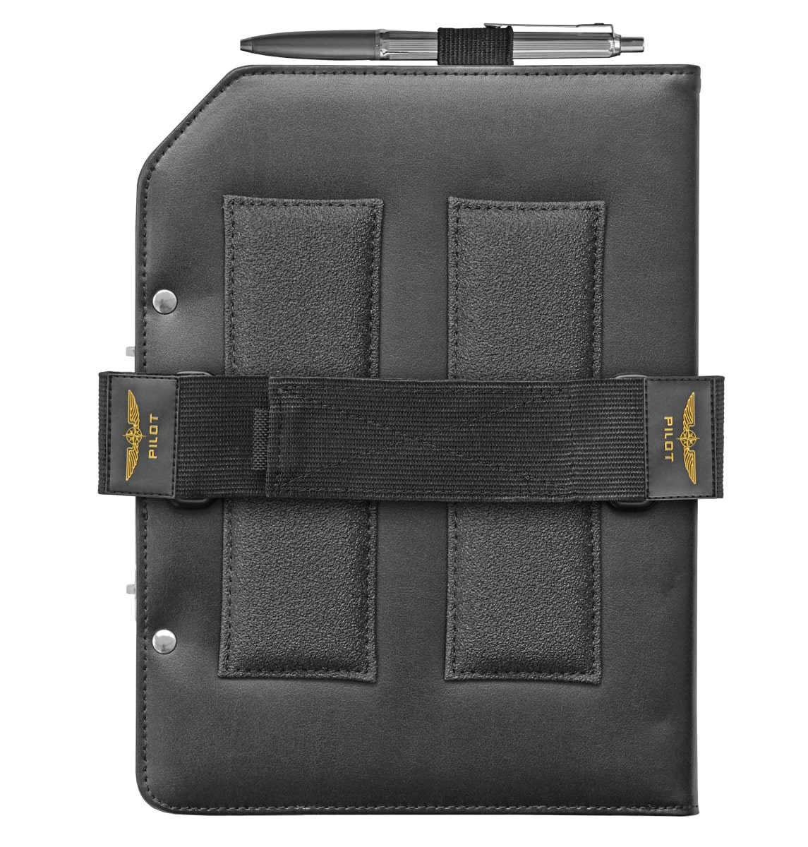 Planchette de vol en cuir petit format avec velcro pour fixation sur la jambe, 6 pochettes plastiques incluses pour ranger les cartes d'approches, un porte-stylo et un clip sur le dessus pour fixer une carte avec une protection plastique.